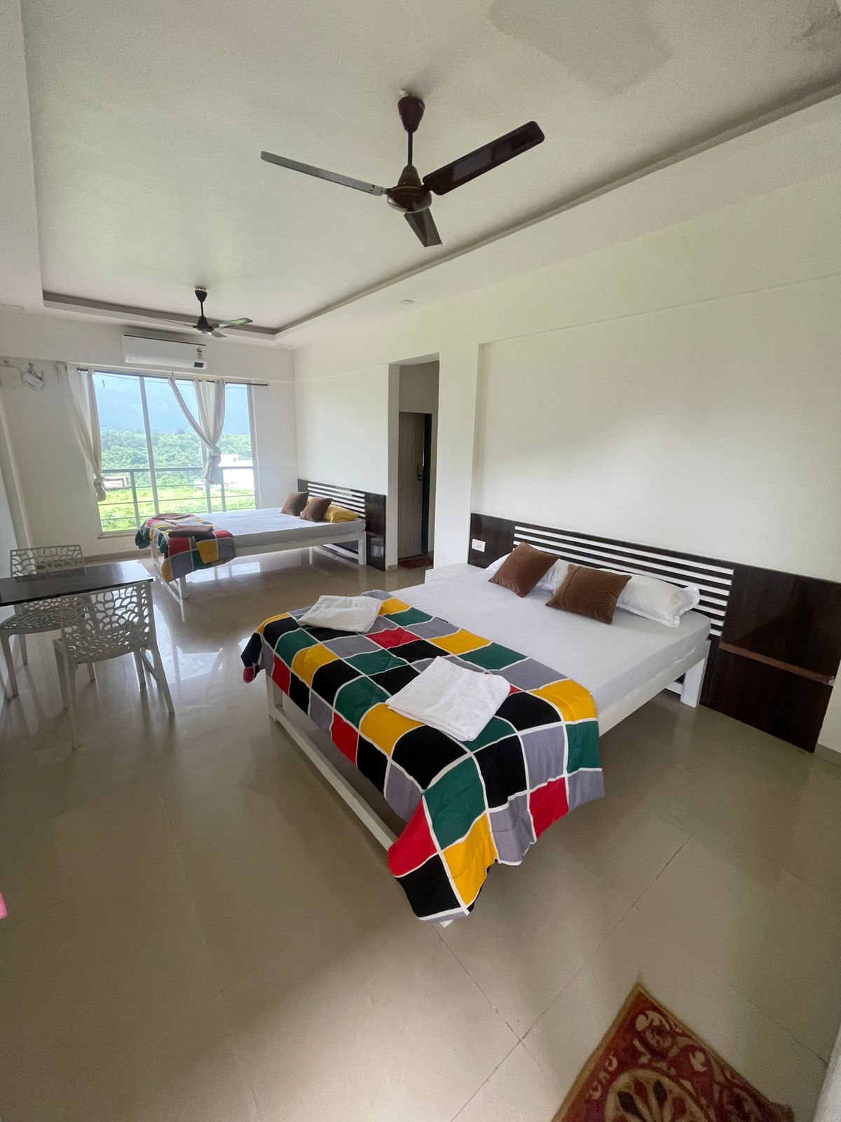 Perched in the serene Sahyadris, this flat blends modern comfort with nature’s charm. Designed for groups, it features 1 spacious AC flat with 1 room that includes 2 double beds and indoor seating, offering a cozy and comfortable stay.